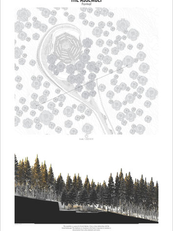 From there I started to examine the spatial semiotics I perceived in spaces where people gathered for debates and discussions. With the intention of implementing these into the forest and integrating them into the landscape. Their integration into the landscape is important, because it stages a disconnection from urban norms, ergo allowing for a debate without the traditional walls of the city.
